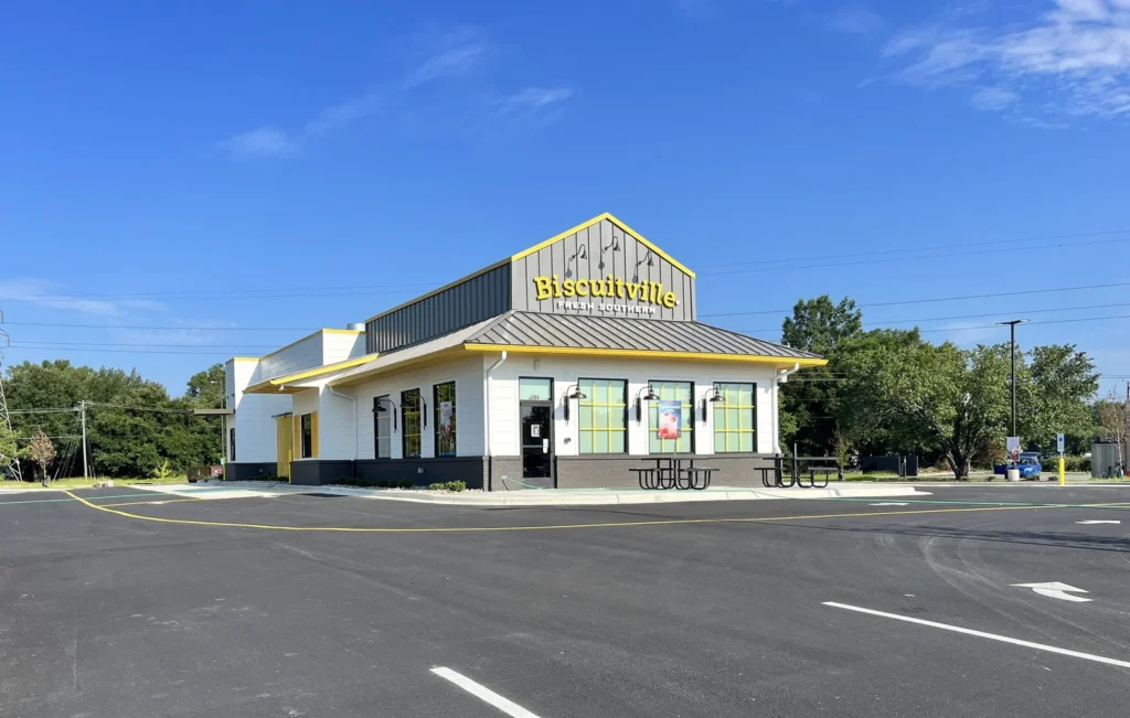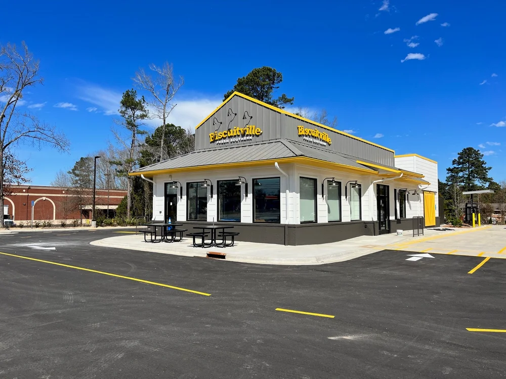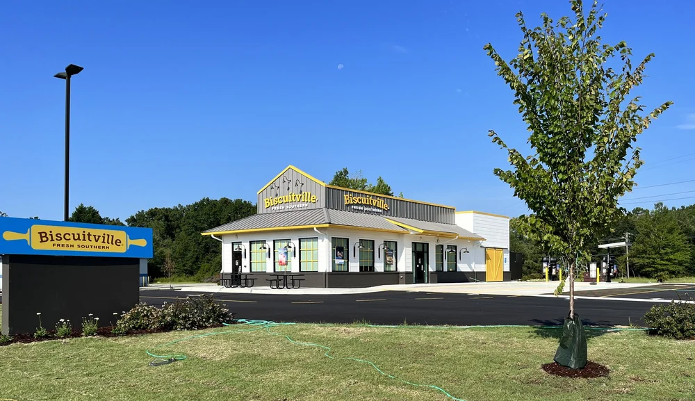 Cooke has been a trusted partner to Biscuitville, Fresh Southern for years. Each new store we’ve built is approximately 2,600 sf, wood truss and stick-framed construction with all associated sitework, storm sewer, utilities, asphalt and hardscapes. Cooke built Biscuitville’s first drive thru only location with #155 Burlington, NC and has built stores in NC, VA and SC.